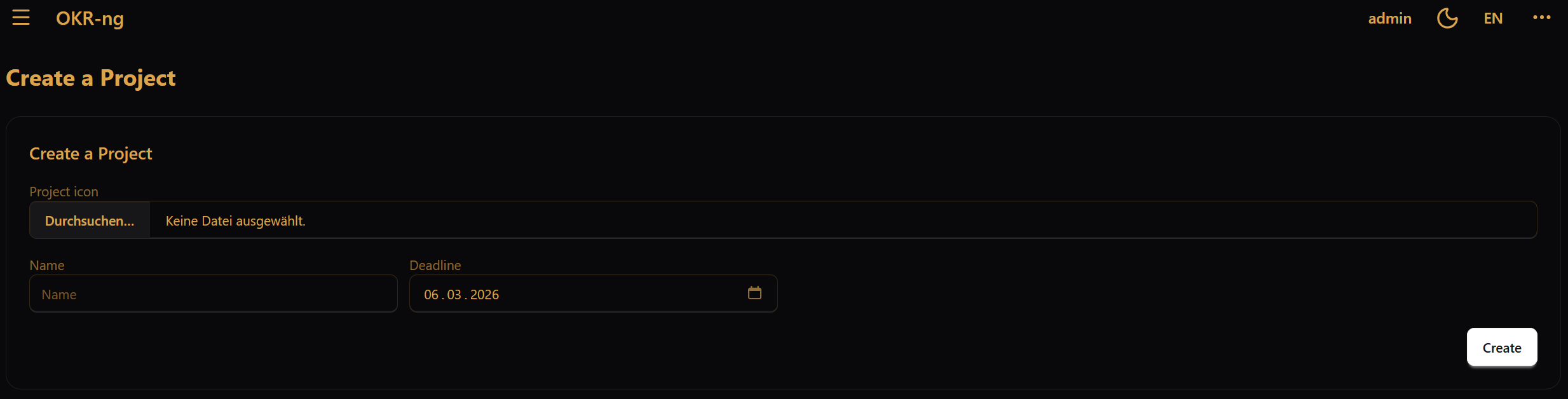 To create a project go to projects and create it there.